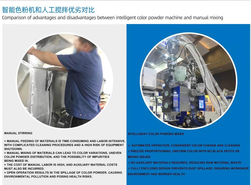 100KG/HΤο "Intelligent Color Powder Mixing" μπορεί να ενσωματωθεί απρόσκοπτα με κεντρικά συστήματα τροφοδοσίας, κεντρικά συστήματα μεταφοράς και συστήματα αυτόματου χειρισμού υλικών. Το Plastic Color Mixer είναι εξοπλισμένο με αισθητήρες ζύγισης υψηλής ακρίβειας, που διασφαλίζουν την ομοιομορφία της διαδικασίας ανάμειξης και τη συνοχή του χρώματος και υποστηρίζει την αυτόματη αναλογία σκόνης και πρόσθετων πολλαπλών συστατικών.